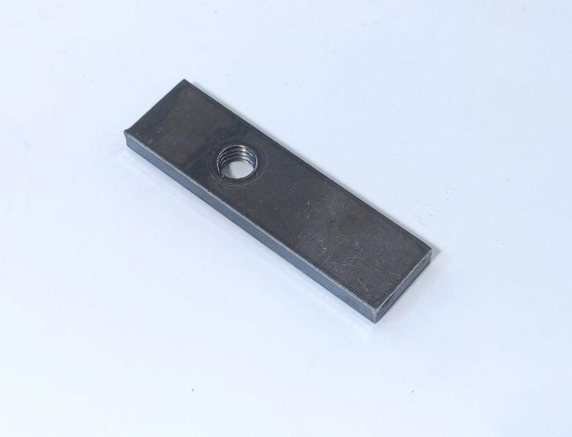 Закладная пластина без покрытия, с отверстием М10, стандартная резьба, качественная углеродистая конструкционная сталь класса Ст. Толщина 6 мм, длина 81 мм, длина от края до центра отверстия 26 мм, ширина 21 мм.