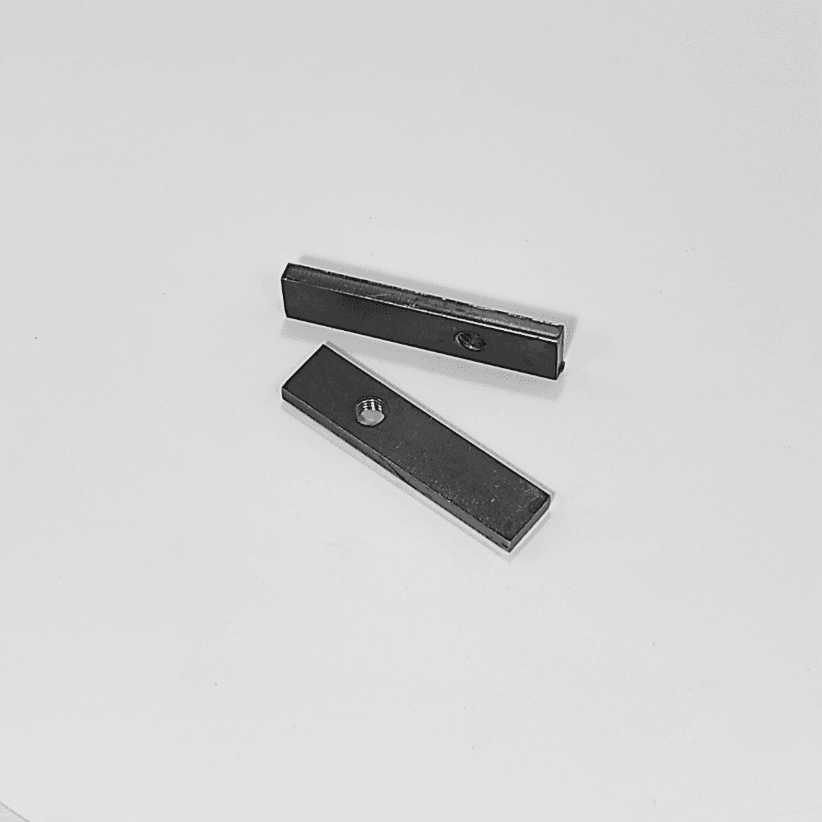 Закладная пластина без покрытия, с отверстием М8, стандартная резьба, качественная углеродистая конструкционная сталь класса Ст. Толщина 5 мм, длина 65 мм, длина от края до центра отверстия 20 мм, ширина 15 мм.